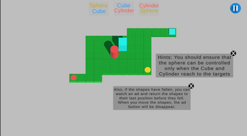 Geometry Pass challenges you to master three distinct geometric shapes—Sphere, Cube, and Cylinder—each with its own physics: the Sphere moves one unit per step, while the Cube and Cylinder switch between one-unit and two-unit moves depending on their orientation. You’ll control two shapes at once (Sphere–Cube, Cube–Cylinder, or Cylinder–Sphere) to navigate obstacles, trigger one-time buttons, and avoid collapsible ground. With 20 handcrafted levels that introduce gaps, switches, and orientation-sensitive tiles, Geometry Pass combines clean, minimalist visuals with deep, strategy-driven puzzles that play equally well on desktop (WASD/arrow keys) Change the Shapes( 1 2 3) Pause (P) and mobile (on-screen D-pad in landscape).